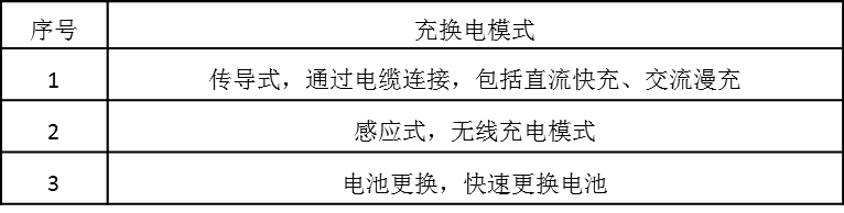 表3.电动汽车充换电模式