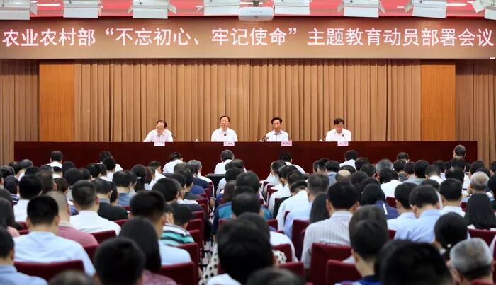 6月4日,农业农村部召开“不忘初心、牢记使命”主题教育动员部署会,认真学习贯彻习近平总书记重要讲话和“不忘初心、牢记使命”主题教育工作会议精神,正式启动并全面部署农业农村部主题教育各项工作。