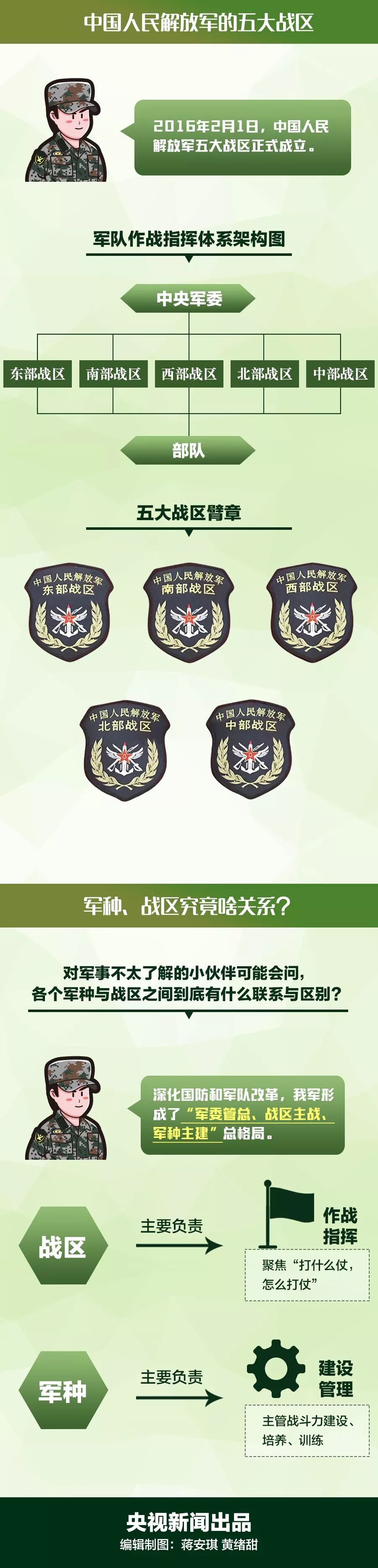不过,如果你对军事不太了解,可能会对我军的军种、战区“一头雾水”。火箭军、战略支援部队、联勤保障部队和传统的陆、海、空军有何不同?军种和战区分别承担什么样的职责?今天,跟随一张长图,一起了解。