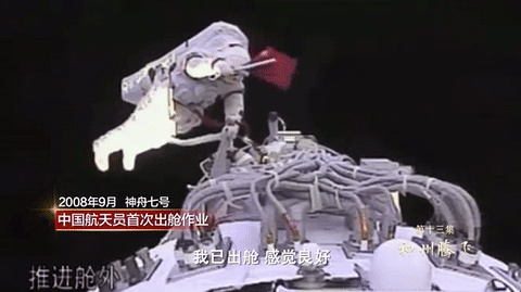 2008年9月 神舟七号 中国航天员首次出舱作业:我已出舱,感觉良好。