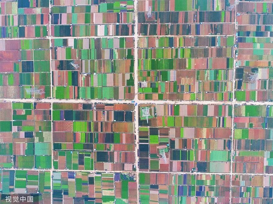 ▲图为卫星拍摄的中国辣椒之乡新疆沙湾县安集海镇,红色区域为晾晒的辣椒。卫星图像来源:天地图