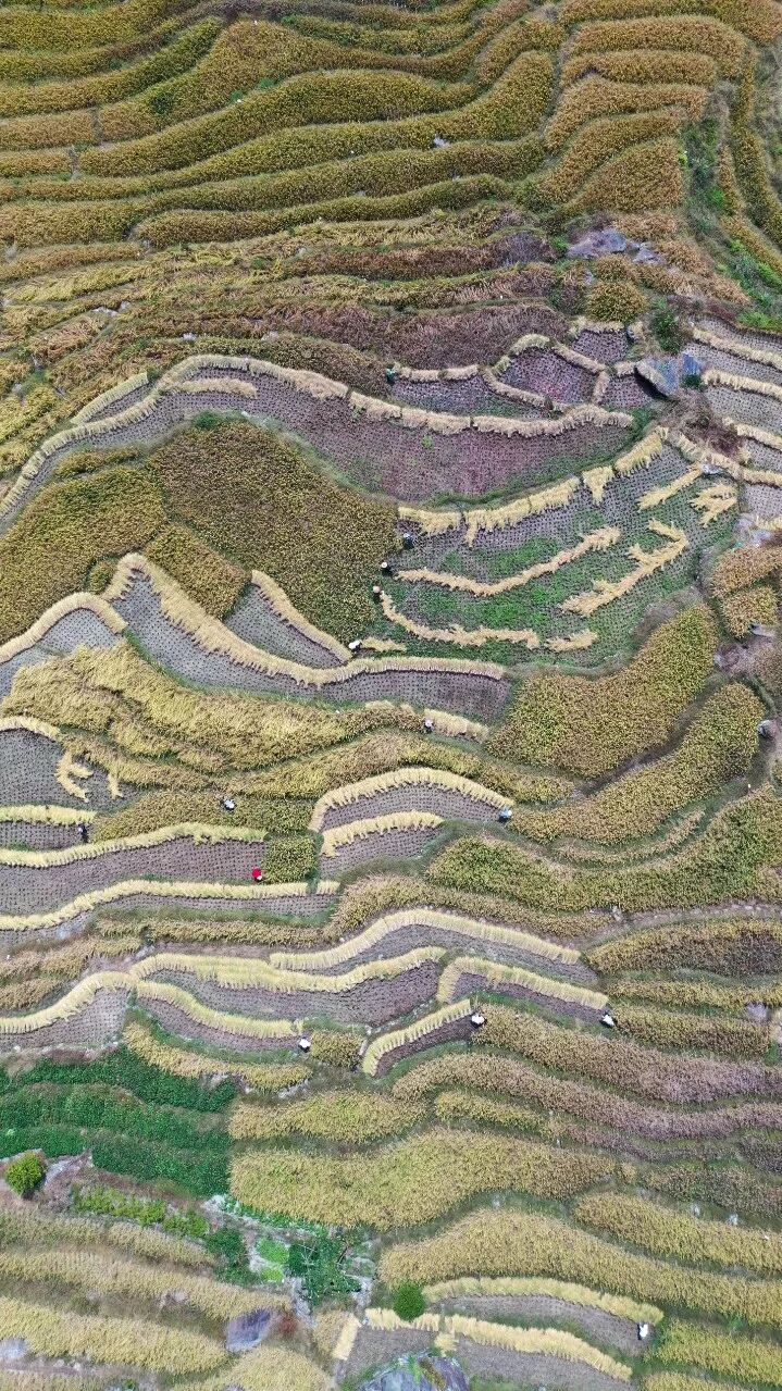▲图为2019年10月11日,广西龙胜各族自治县龙脊镇龙脊古壮寨农民在收割稻谷。来源:新华社