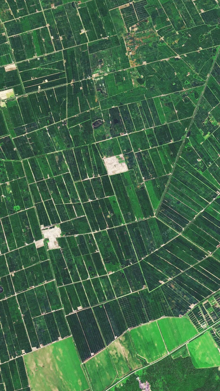 ▲图为陕西榆林靖边沙漠农业试验田,曾经的沙地正在“变身”陕西大粮仓。卫星图像来源:天地图