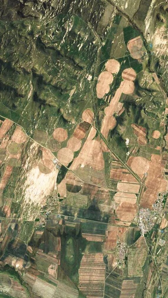 ▲图为锡林郭勒盟多伦县开发的节水灌溉农田。卫星图像来源:天地图