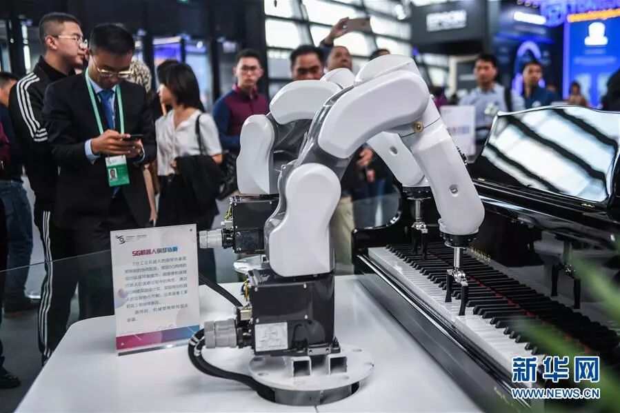 这是互联网之光博览会现场展示的能弹钢琴的5G机器人(10月18日摄)。 新华社记者 徐昱 摄