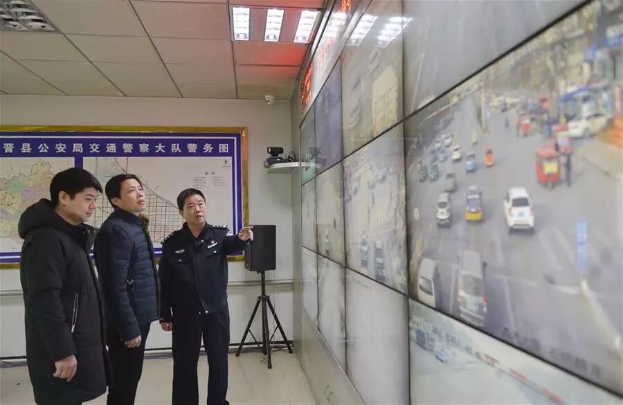 河北省宁晋县纪检干部借助公安机关交通监控系统,实时查看公车运行轨迹,严查公车私用问题(2018年12月29日摄)。新华社记者 牟宇 摄