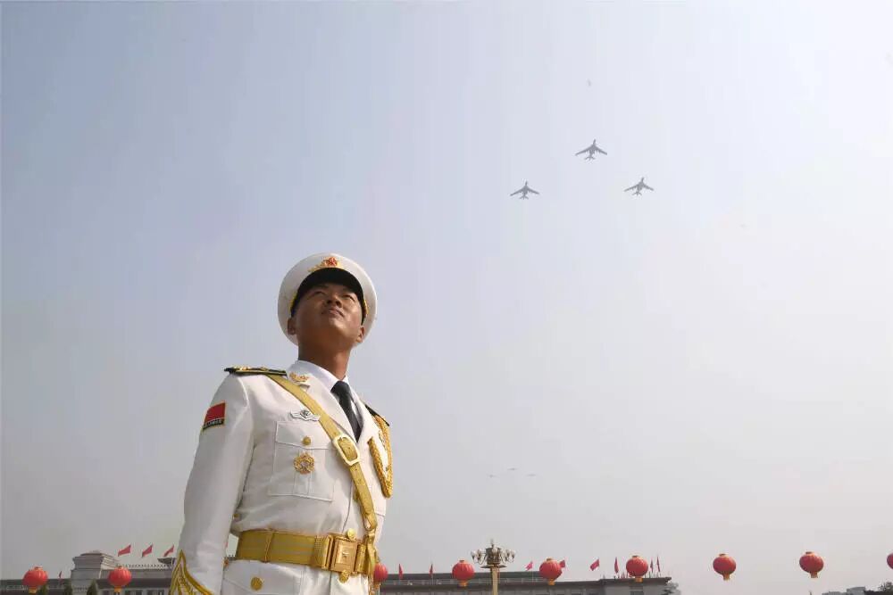 2019年10月1日,庆祝中华人民共和国成立70周年大会在北京天安门广场隆重举行。这是受阅的领队机梯队。新华社记者薛玉斌摄