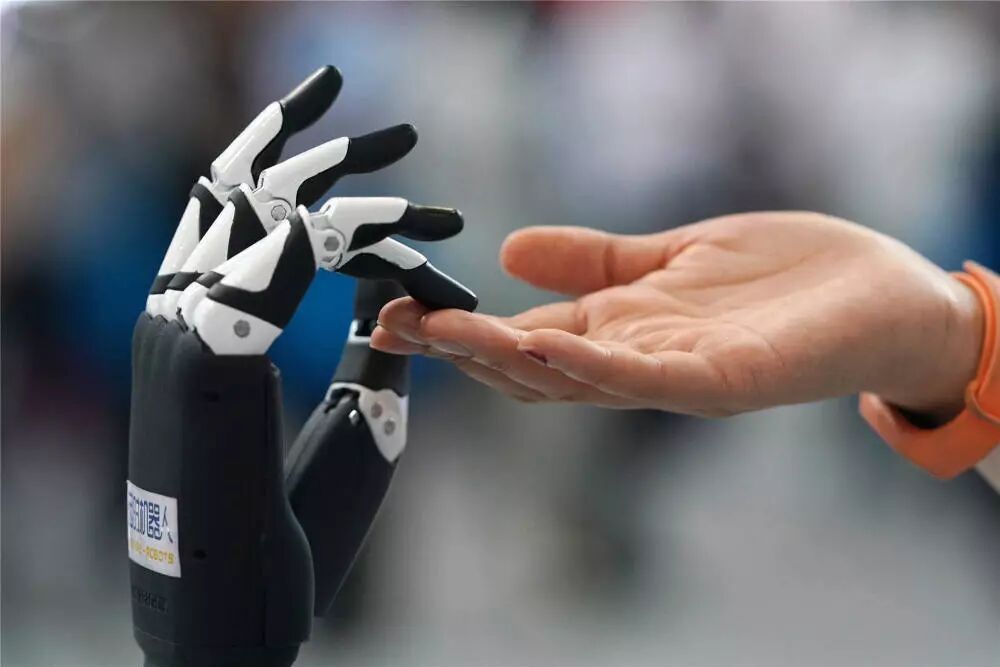 2019年6月13日,全国大众创业万众创新活动周——北京会场主题展在中关村国家自主创新示范区展示中心开幕。这是一位参展商在演示展出的机器人产品。新华社记者鞠焕宗摄