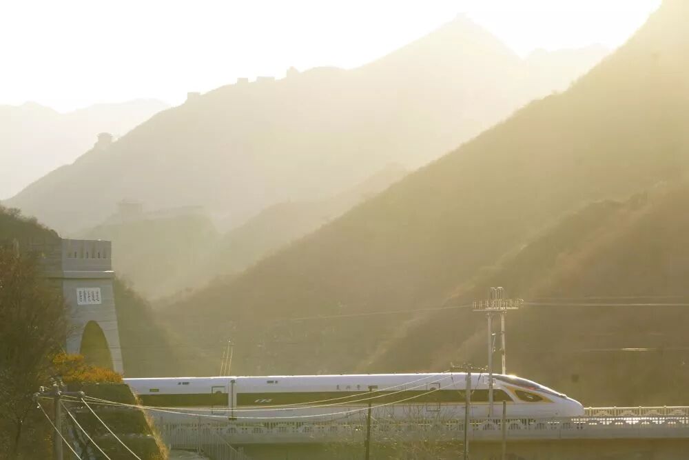 2019年12月30日,G2418次列车驶过居庸关长城。当日,北京至张家口高速铁路开通运营,崇礼铁路同步通车。新华社记者邢广利摄