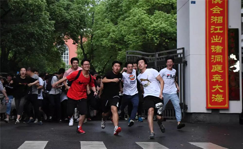 2019年6月8日,高考结束后,考生冲出湖南省长沙市第一中学考点。新华社记者薛宇舸摄