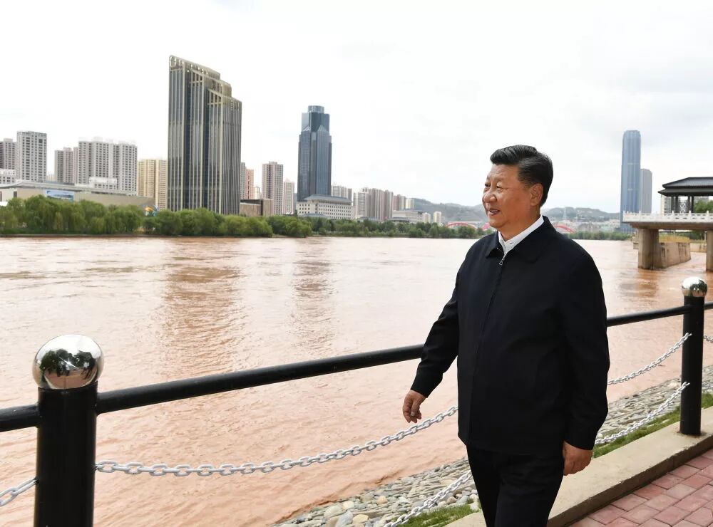 2019年8月21日下午,中共中央总书记、国家主席、中央军委主席习近平在甘肃省兰州市黄河治理兰铁泵站项目点了解黄河治理和保护、堤坝加固防洪工程建设等情况。新华社记者谢环驰摄