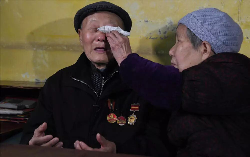 2019年3月31日,在湖北省来凤县的家中,张富清回忆当年并肩作战的战友们牺牲时的情景,不禁泪流满面。1924年12月,张富清出生于陕西汉中洋县马畅镇双庙村一个贫农家庭。1948年,他在壶梯山战斗、永丰城战斗中,任突击组长,先后炸掉敌人三个碉堡,立下赫赫战功。新华社记者程敏摄