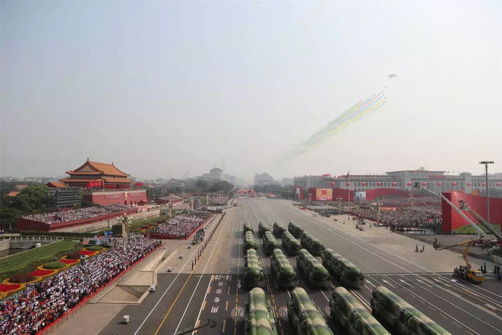 2019年10月1日,庆祝中华人民共和国成立70周年大会在北京天安门广场隆重举行。这是火箭军方队接受检阅。新华社记者郭绪雷摄
