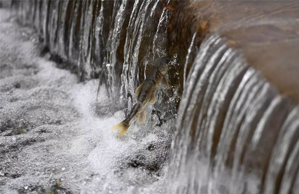 2019年7月6日,在青海省刚察县沙柳河里,一条湟鱼在洄游。新华社记者张宏祥摄