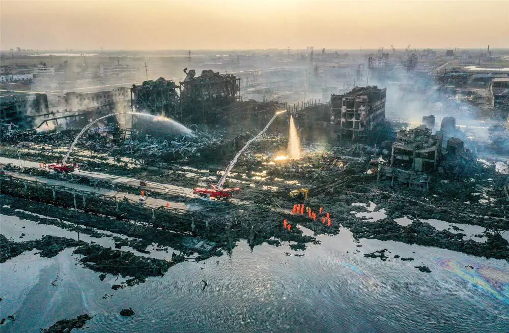2019年3月23日拍摄的江苏省盐城市响水县天嘉宜化工有限公司“3·21”特别重大爆炸事故现场(无人机照片)。新华社记者李博摄