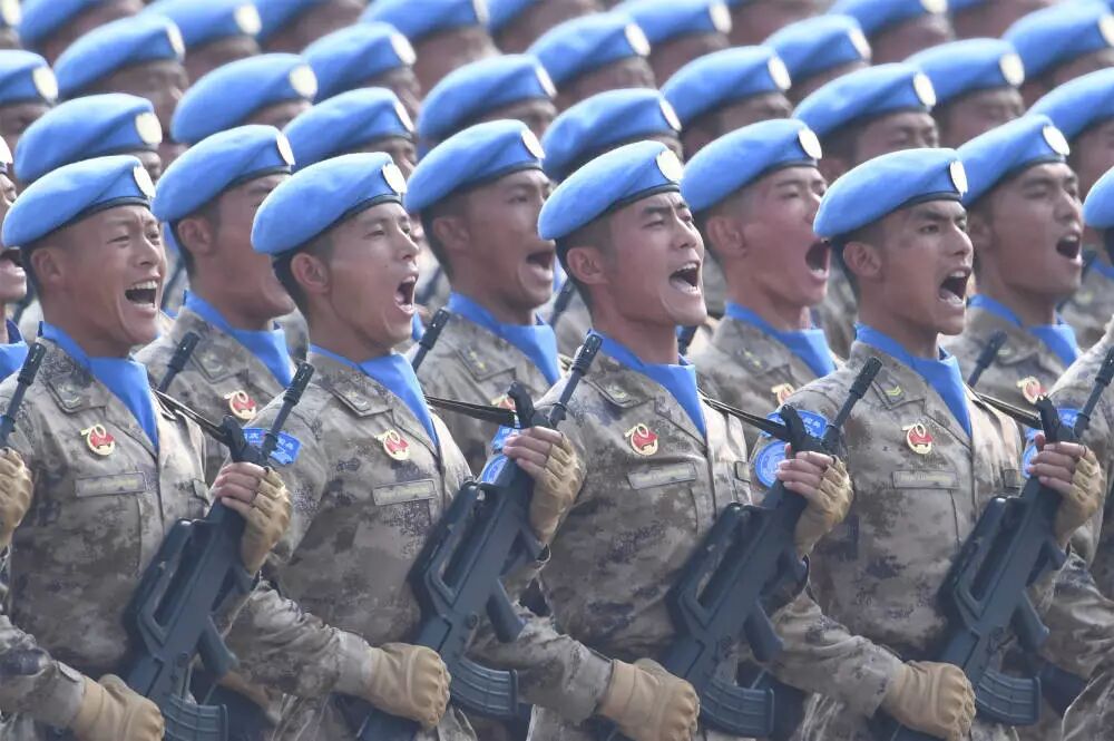 2019年10月1日,庆祝中华人民共和国成立70周年大会在北京天安门广场隆重举行。这是维和部队方队接受检阅。新华社记者刘大伟摄