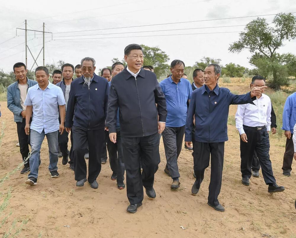 2019年8月19日至22日,中共中央总书记、国家主席、中央军委主席习近平在甘肃考察。这是21日上午,习近平在武威市古浪县八步沙林场察看林场整体风貌,听取武威市防沙治沙整体情况汇报和八步沙林场“六老汉”三代人治沙造林的感人事迹。新华社记者谢环驰摄