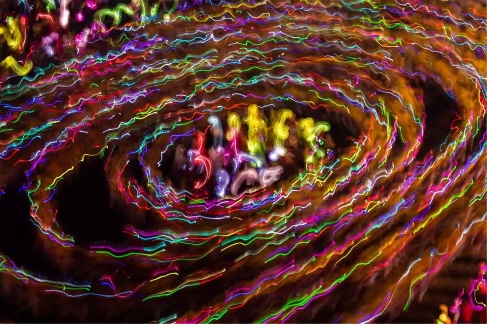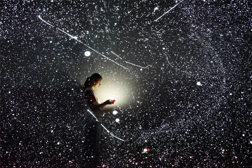 2019年5月28日, 参观者在贵州省贵阳市举办的2019中国国际大数据产业博览会“追梦·未来”数字艺术特展上观看和体验艺术作品《宇宙深空》。新华社记者杨文斌摄