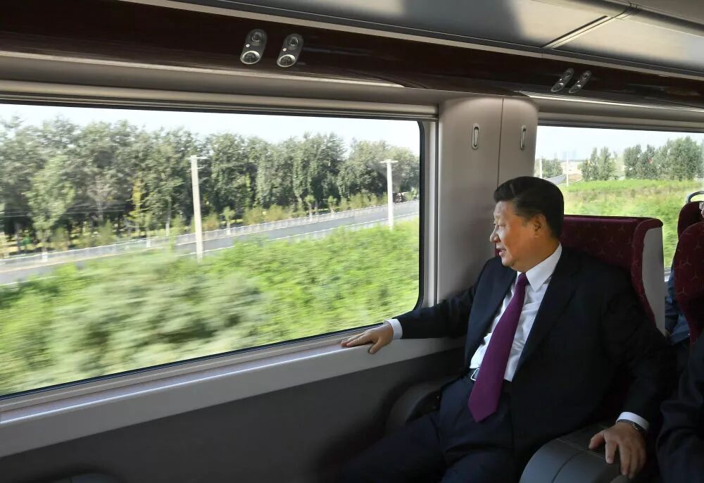 2019年9月25日上午,北京大兴国际机场投运仪式在北京举行。中共中央总书记、国家主席、中央军委主席习近平出席仪式,宣布机场正式投运并巡览航站楼。这是习近平乘坐轨道列车前往北京大兴国际机场。新华社记者谢环驰摄