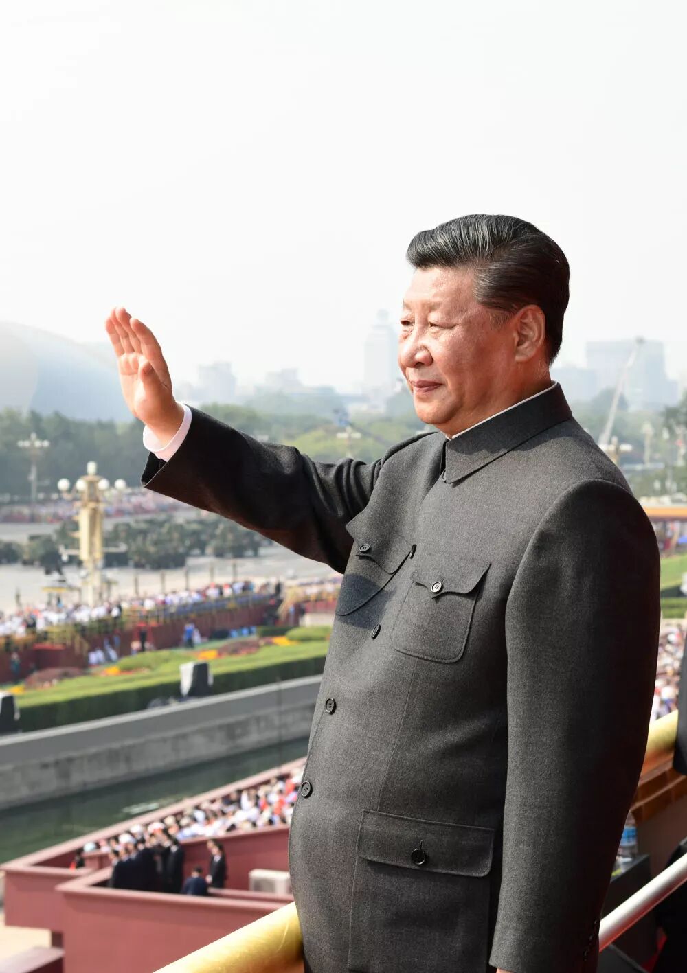 2019年10月1日,庆祝中华人民共和国成立70周年大会在北京天安门广场隆重举行。这是中共中央总书记、国家主席、中央军委主席习近平检阅受阅部队。新华社记者李涛摄
