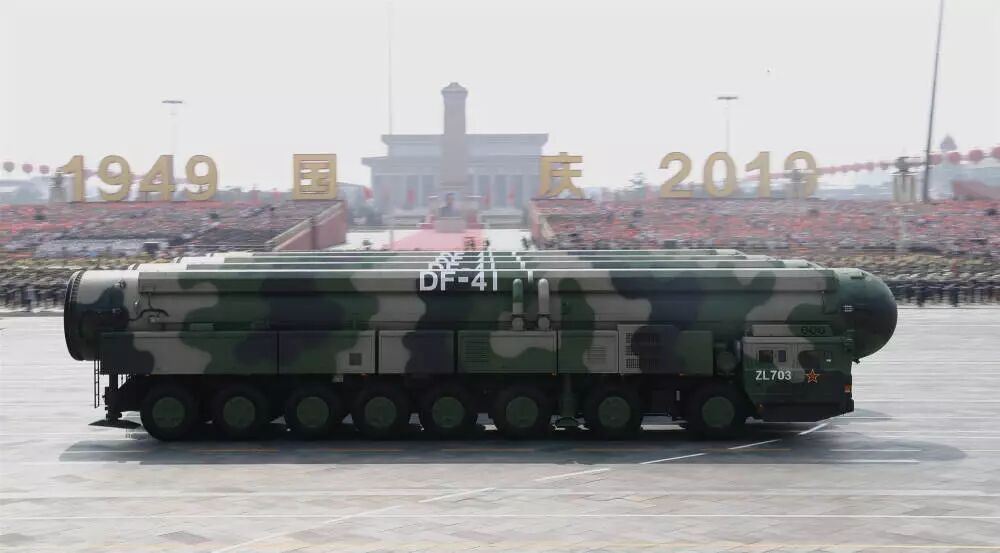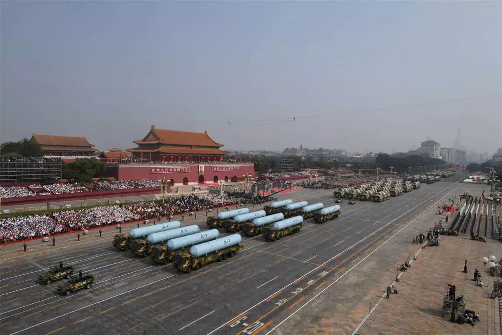 2019年10月1日,庆祝中华人民共和国成立70周年大会在北京天安门广场隆重举行。这是东风-41核导弹方队接受检阅。新华社记者刘彬摄