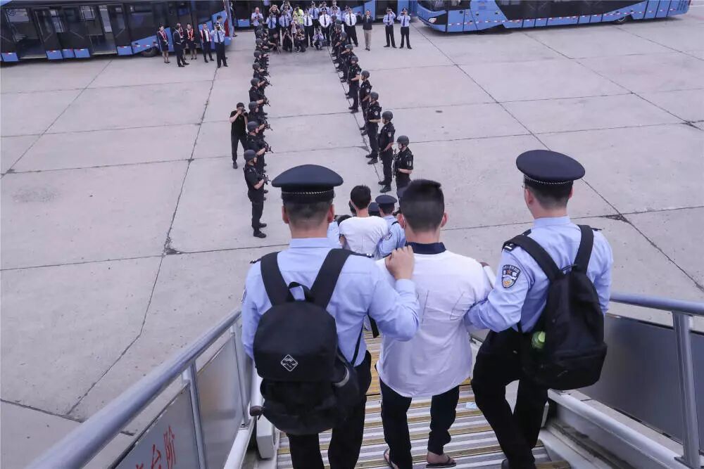 2019年6月7日,在北京首都国际机场,94名冒充公检法机关工作人员实施电信网络诈骗的中国台湾籍犯罪嫌疑人被我国公安机关从西班牙押解回国。这是我国首次从欧洲大规模押回电信网络诈骗犯罪嫌疑人。新华社记者殷刚摄