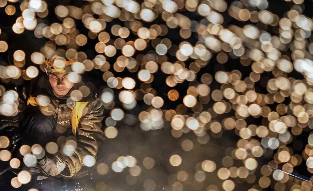 2019年1月15日凌晨,中铁十一局施工人员在陕西省西安火车站改扩建工程现场切割钢轨。新华社记者陶明摄