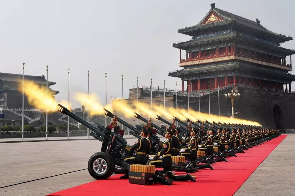 2019年10月1日,庆祝中华人民共和国成立70周年大会在北京天安门广场隆重举行。这是礼炮鸣响。新华社记者万象摄