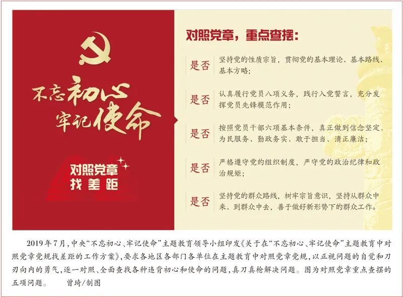房间要经常打扫,镜子要经常擦拭。要守住初心和使命,就必须教育引导各级党组织和广大党员、干部经常进行思想政治体检,同党中央要求“对标”,拿党章党规“扫描”,用人民群众新期待“透视”,同先辈先烈、先进典型“对照”,不断叩问初心、守护初心,不断坚守使命、担当使命,始终做到初心如磐、使命在肩。