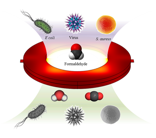 办公室、高铁车厢、包厢等密闭空间或公用场所空气质量与人体健康息息相关。密闭空间中的甲醛以及细菌、病毒等病原体会降低人体免疫力,致病致癌。因此,开发多功能空气净化器件与装置迫在眉睫。