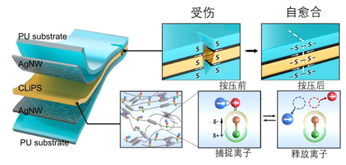 那么,机器人的“皮肤”也可以跟人类皮肤一样具有触觉吗?触觉细胞的响应原理早已引起了研究者的关注,国内外科学家此前曾开发出若干种基于此原理具有离子传输机制的离子皮肤。但是由于持续磨损或者机械损伤,导致此类“皮肤”性能逐渐下降。我们是否可以赋予离子皮肤自我修复性能,让它像真正的皮肤一样,既可以感受外界应力又可以自愈合呢?