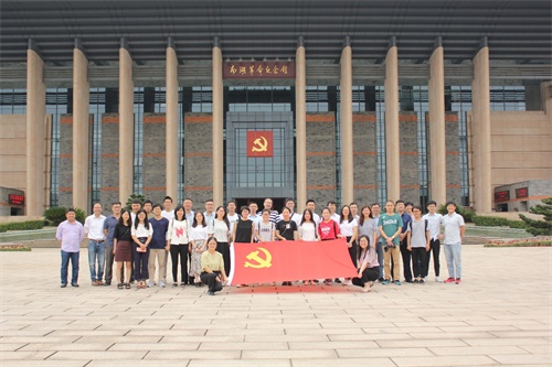中午时分,党员们怀着崇敬的心情来到庄严肃穆的南湖革命纪念馆参观。站在中国革命的原点,一份份珍贵的史料文件、一幅幅斑驳的老照片、一座座栩栩如生的雕塑,为党员们翻开了风云激荡的红色历史篇章,重现了我党艰难曲折的发展历程,党员们纷纷表示深受震撼。最后,在纪念馆外的宣誓墙前,全体党员面向巨幅党旗,右拳在握,昂首挺胸,在刘宜伟的领誓下重温了入党誓词,一字一句,句句铿锵,这是大家发自内心的庄严承诺,时刻提醒着党员们不忘科技报国初心、牢记科技强国使命。