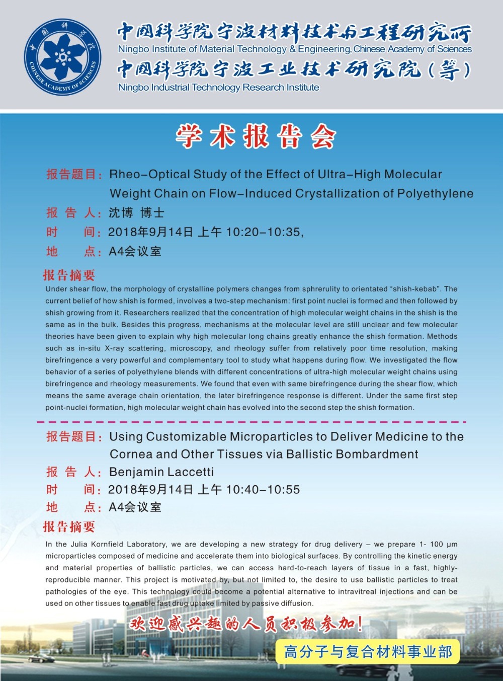 2018.9.14,沈博博士,Rheo-Optical Study of the Effect of Ultra-High Molecular Weight Chain on Flow-Induced Crystallization of Polyethylene