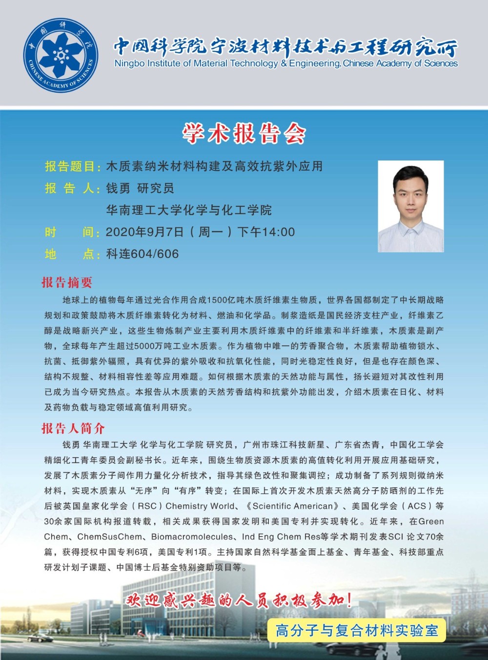 2020.09.07,钱勇研究员:木质素纳米材料构建及高效抗紫外应用
