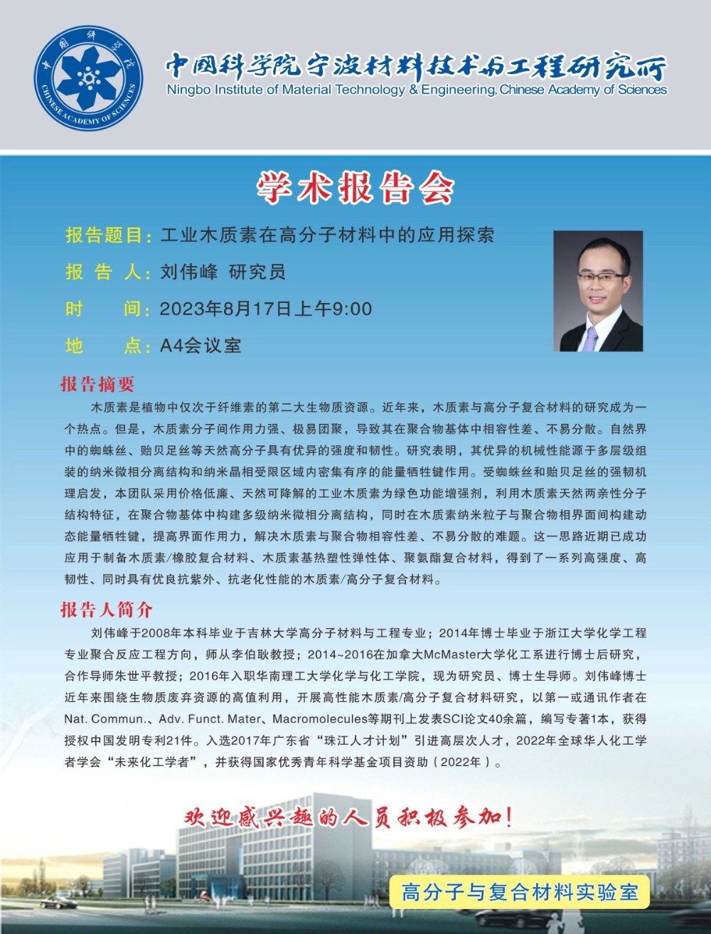 2023.08.17,刘伟峰研究员:工业木质素在高分子材料中的应用探索