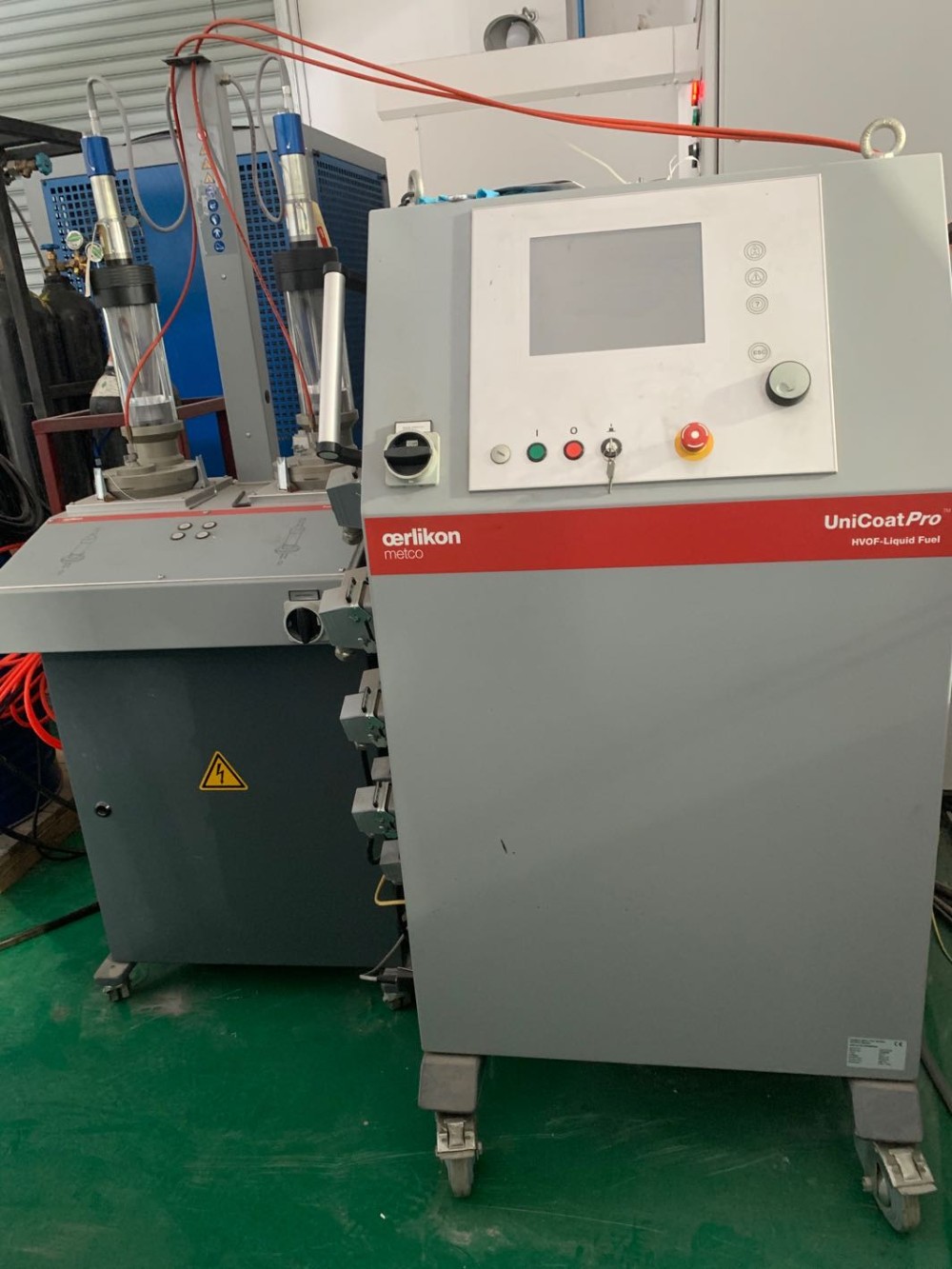 Woka系列的控制部分采用苏尔寿-美科最享有盛名的UniCoat质量流量计控制柜。在超音速火焰喷涂设备的控制柜选择上,用户能够有以下三种:1.是单独提供控制燃气HVOF设备的UniCoat控制柜,如专供控制DJ2700设备使用;2.是单独提供控制燃煤油HVOF设备的UniCoat控制柜;3.是既可控制燃气HVOF又可控制燃煤油HVOF的UniCoat控制柜。