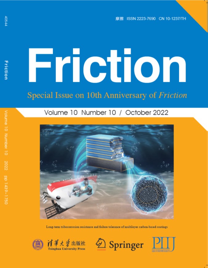 - Hao Li, Linlin Liu, Peng Guo*, Lili Sun, Jing Wei, Yingrui Liu, Shuyu Li, Shuyuan Wang, Kwang-Ryeol Lee, Peiling Ke, Aiying Wang*, Long-term tribocorrosion resistance and failure tolerable of multilayer carbon-based coatings, Friction, 2022, 10(10):1707–1721.【PDF】 Cover page