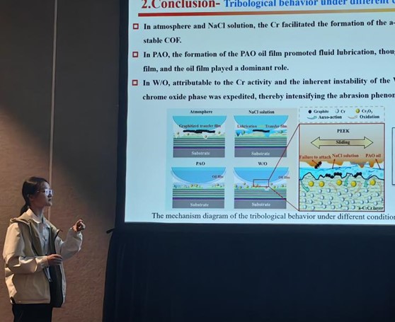 中国科学院宁波材料所碳基薄膜与涂层技术研究团队的博士后李昊博士、博士研究生周小卉参加了此次会议, 并分别做了题为“Structure Design and Degradation Mechanism of Amorphous Carbon Coatings on Metallic Bipolar Plates”和“Cr Doping Modification for Tribological Behavior of Cr/a-C Multilayer Coatings against PEEK under Diverse Operational Conditions”的口头英文报告。重点介绍了团队在双极板表面改性涂层及非晶碳摩擦学等方面的最新进展,获得了与会代表的浓厚兴趣和讨论交流。此外,会议期间,成员一行与团队长期合作者-韩国科学技术研究院的Kwang-Ryeol Lee研究员就双方合作主题、未来进一步工作目标和方案等,进行了深入探讨。