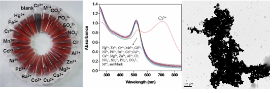 11.Junwei Xin, Fuqiang Zhang, Yuexia Gao, Yanyan Feng, Shougang Chen*, AiguoWu*. A rapid colorimetric detection method of trace Cr (VI) based on the redox etching of Ag(core)-Au(shell) nanoparticles at room temperature.Talanta, 2012, 101, 122–127.