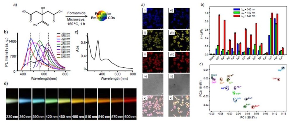 17.Lulu Pan, Shan Sun, Aidi Zhang, Kai Jiang, Ling Zhang, Chaoqing Dong, Qing Huang, Aiguo Wu, Hengwei Lin*, Truly fluorescent excitation-dependent carbon dots and their applications in multicolor cellular imaging and multidimensional sensing, Adv. Mater. 2015, 27, 7782–7787.