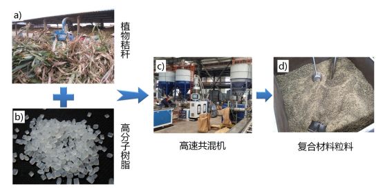 蓬松的植物秸秆与高速共混设备,板材挤出连续生产线,复合材料粒料